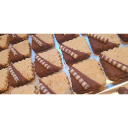 Täfelchen sind mit Nutella gefüllt und mit Schokoladenglasur sowie Schokoröllchen und Goldglitter verziert.