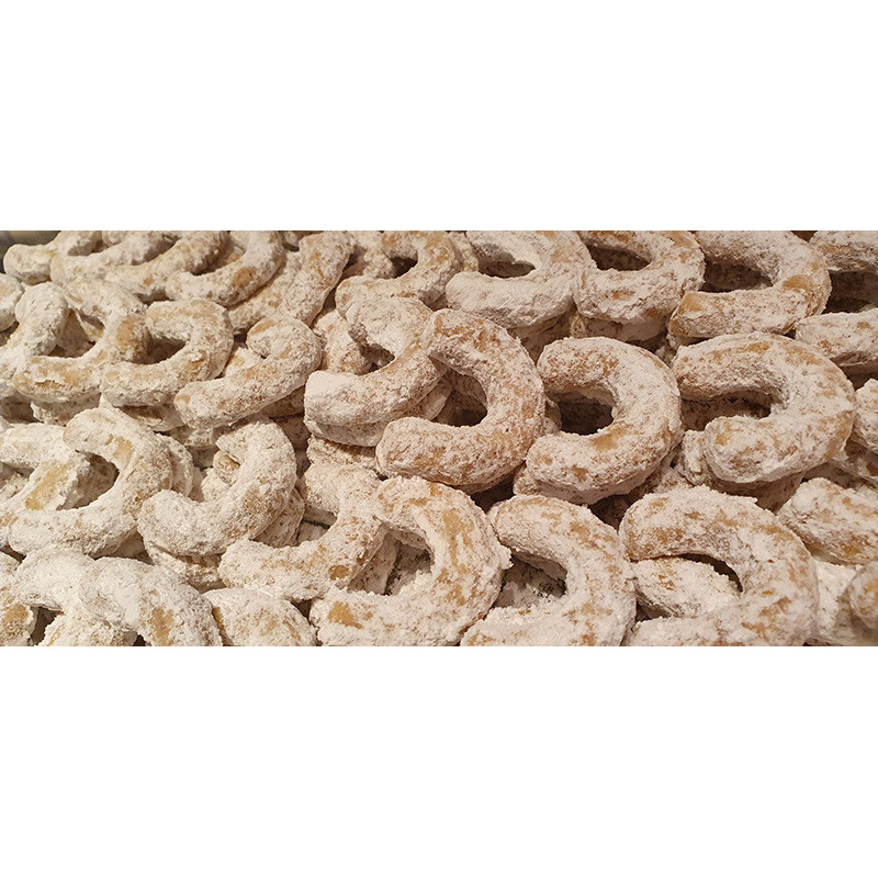Kipferl sind in Staubzucker/Vanillezucker-Gemisch gewälzt.