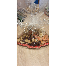 Attraktiver Pappteller mit Zellophan Folie und Bändern als kleines Mitbringsel. Für bis zu 1,5kg.