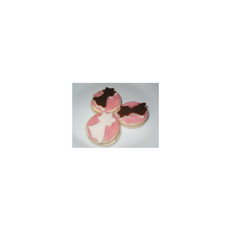 Zutaten: Butter, Rohrzucker, Vollkornmehl, Eier, Zitronenschale, Erdbeermarmelade, Rosa/Weisse Zuckerperlen, Weisse Schokoladenglasur, Rote Lebensmittelfarbe